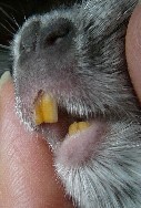 zkracovat hlodáním, ty se špatně obrušují a přerostou. U zdravého zvířete je délka řezáků cca 5 mm a horní řezáky jsou v mírném předkusu oproti dolním řezákům. Zuby mají mít zažloutlou až oranžovou barvu. Světlá barva